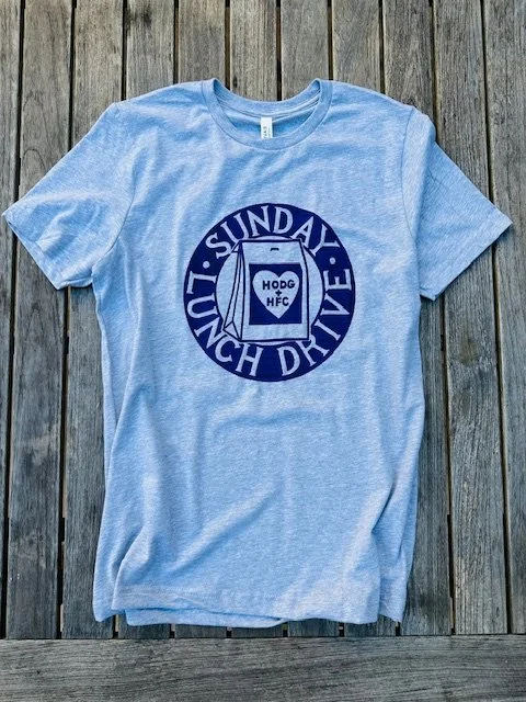 Support our Sunday Lunch Drive with this awesome t-shirt made by HODG and Hollywood Food Coalition’s very own, David H. Goodman: volunteer, TV writer and printmaker extraordinaire!